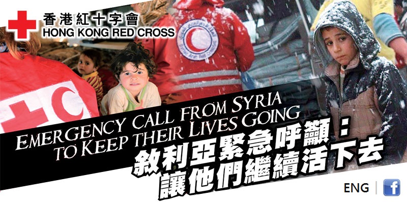 敘利亞難民物資嚴重匱乏,難以熬過嚴冬,他們的生存需要一直被忽略。780萬還在境內的難民,在戰火下一無所有,不少人在臨時撘建的營地已居住了幾年,要渡過這個寒冷的冬天,只能冀盼你的援手。國際紅十字會每年均向有需要的家庭提供食糧,並在嚴冬中加緊派發地墊、床褥及毛毯等禦寒物資。我們需要你的支持繼續為敘利亞難民提供必要的救援。